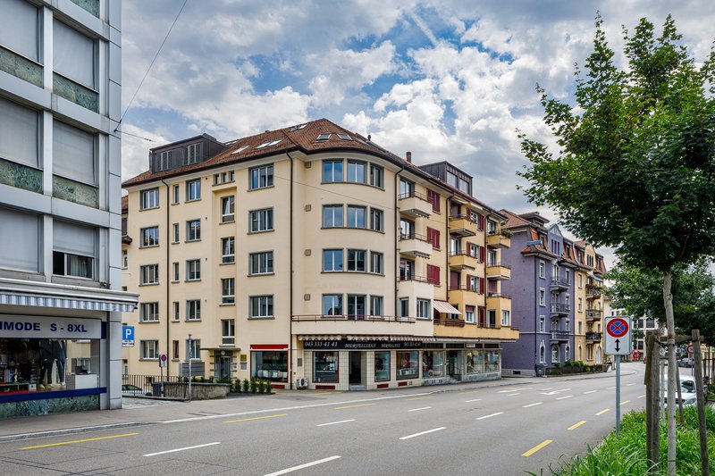 Zahlreiche Lebensmittelgeschäfte sowie Einkaufsmöglichkeiten befinden sich nur einen Katzensprung entfernt. Nur wenige Meter entfernt befindet sich die Tram- und Busstation "Sternen Oerlikon" - den Bahnhof erreichen Sie in zehn Gehminuten.