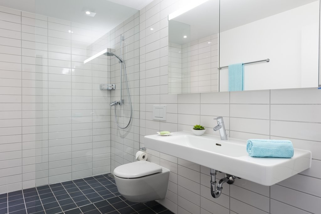 - Hochwertiges Bad/WC mit Feinsteinzeugplatten als persönliche Wellnessoase