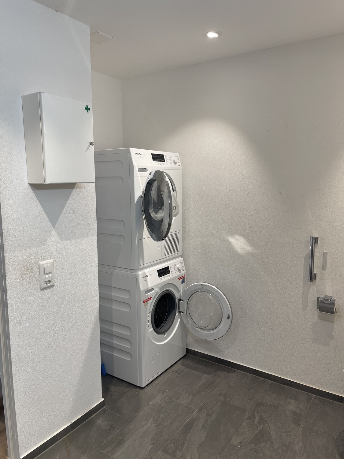 Die Wohnung liegt am Ende einer Sackgasse und liegt sehr ruhig. Ein Kellerabteil und ein Garagenplatz in der Tiefgarage gehören dazu (im Preis inbegriffen. Die Wohnung hat einen schönen Sitzplatz und liegt gleich neben der zweiten zu verkaufenden Wohnung (CHF 695'000.-), welche nicht saniert wurde. Zusammen kann hier eine grosse 6.5-Zimmer-Wohnung entstehen. Das Potential liegt vor.