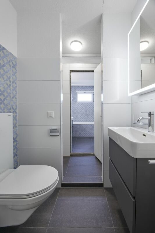 Renoviertes Gäste-WC mit Plattenboden
