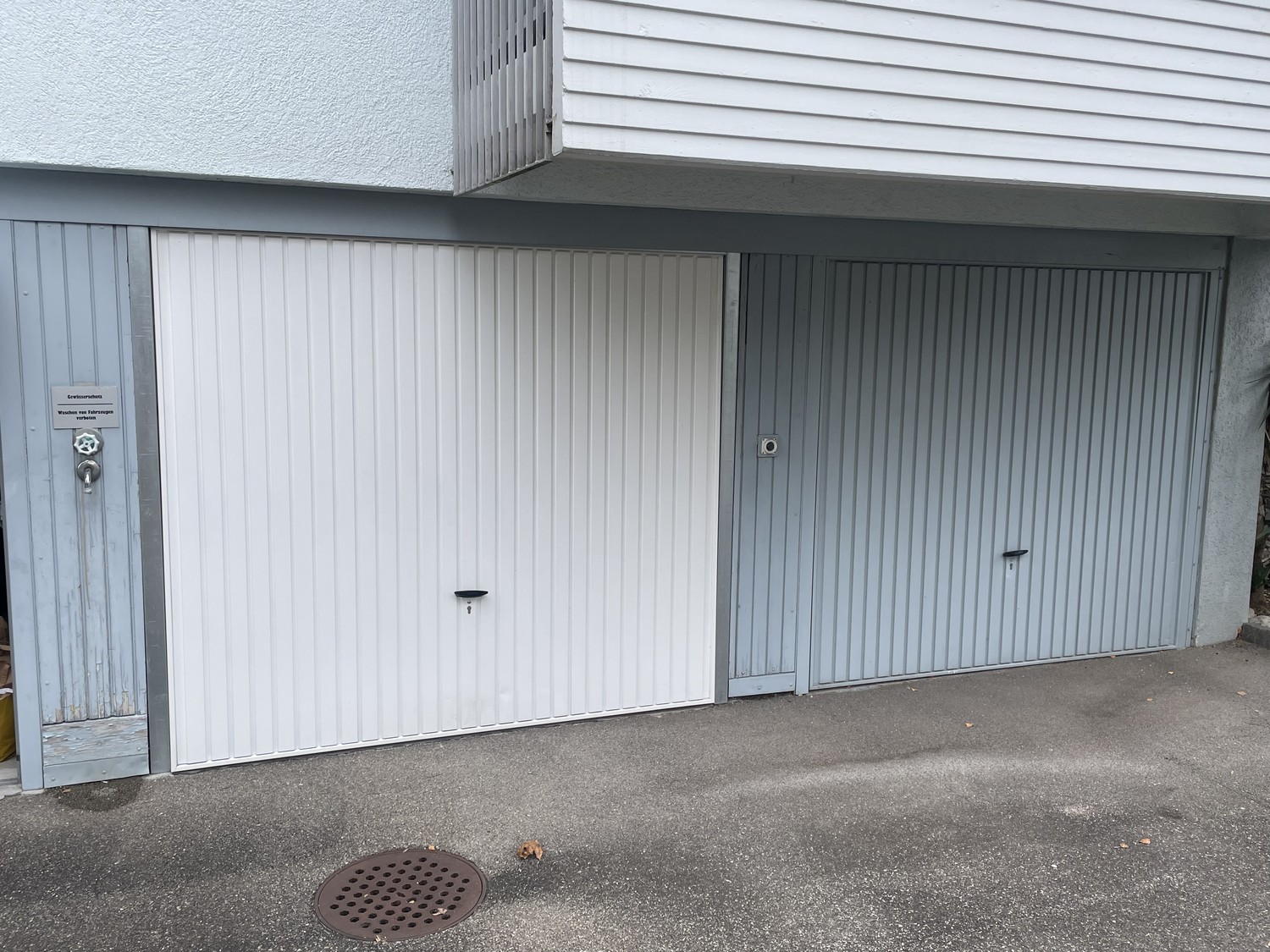 Bodenebene Garage. Mit Stromanschluss und Licht.