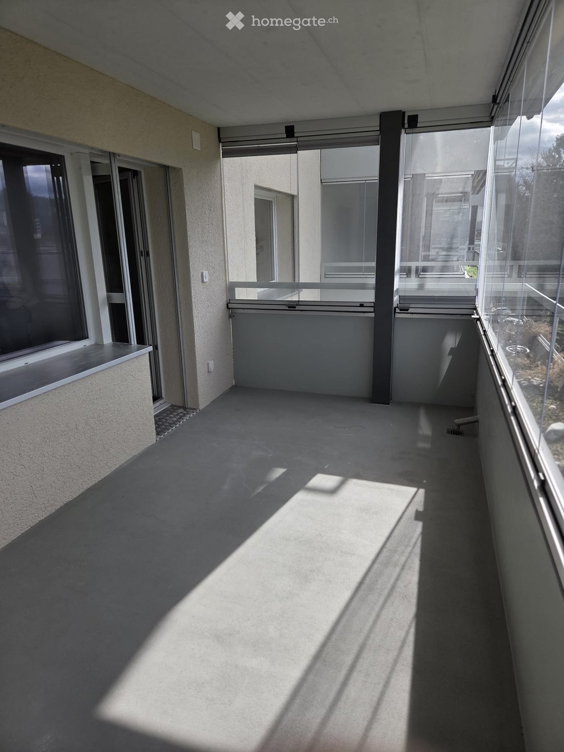 Die Wohnung befindet sich im vierten OG und hat einen grossen Balkon mit verschiebbaren Glasscheiben. Die Zimmer sind sehr hell. Die Wohnfläche umfasst 78m2.