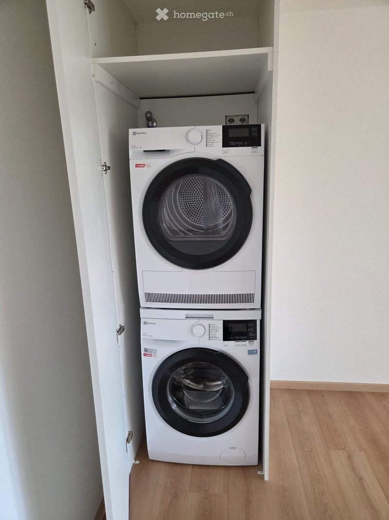 In der Wohnung befindet sich eine Waschmaschine und einen Wäschetrockner. Es gibt auch die Möglichkeit den gemeinsamen Waschraum zu benützen.