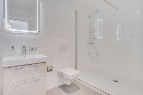 Moderne Nasszelle (Dusche/WC) mit Feinsteinzeugplatten