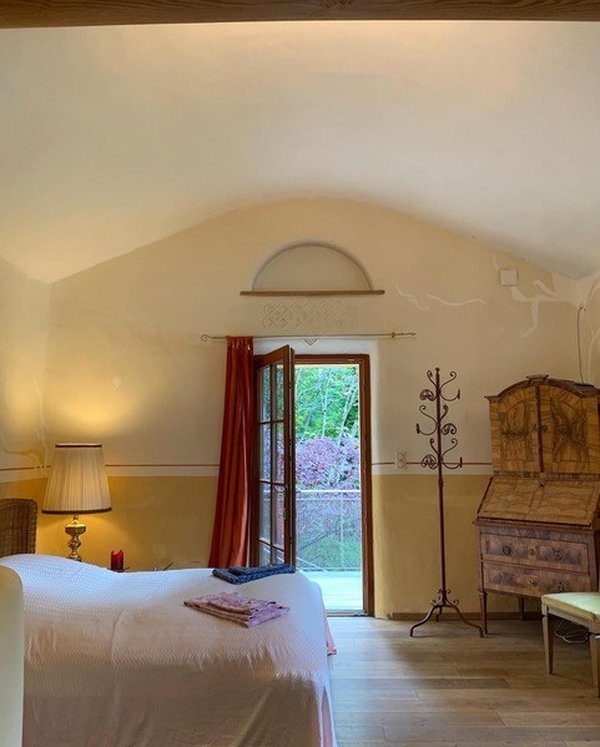 Grosszügiges Schlafzimmer: Mit grossem Bett, Schreibtisch, Schrank und direktem Zugang zum Balkon