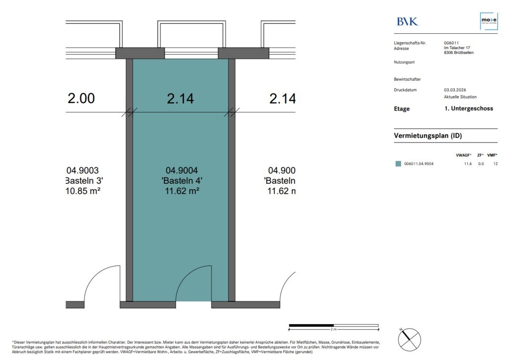 Im Untergeschoss der Liegenschaft Im Talacher 17 in Brüttisellen vermieten wir einen Bastelraum (12 m2), welcher über einen Stromanschluss verfügt.