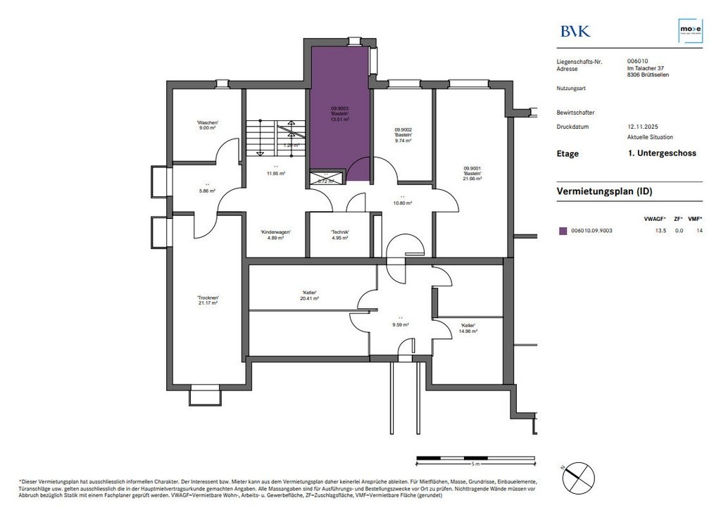 Bitte beachten Sie, dass sich die Bastel-/Lagerräume in einer Wohnüberbauung befinden und nur als Bastel-/Lagerräume vermietet werden. Die Räume eigenen sich nicht zum musizieren oder zum Abspielen von Tonwiedergabegeräten. Zudem besteht keine Möglichkeit WC-Anlagen zu benützen.