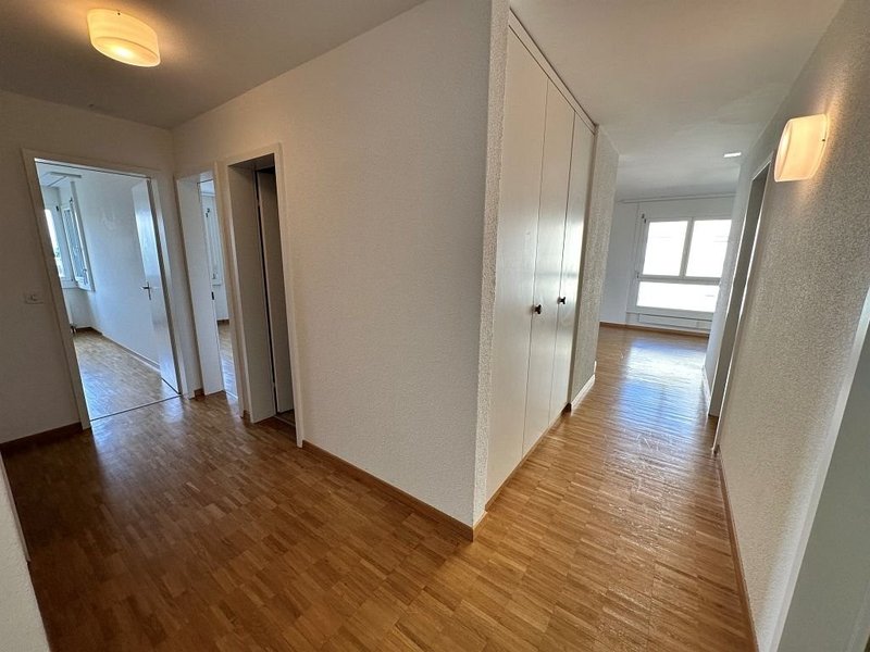 Helle, geräumige Wohnung mit attraktiven Grundriss - grosse Küche mit Geschirrspüler und Glaskeramikkochfeld - Badezimmer mit Badewanne und Plattenboden - sep. WC mit Dusche - Korridor mit praktischem Einbauschrank und Parkettboden - grosses Wohnzimmer mit Chemineé und Parkettboden - Schlaf-, Kinderzimmer und Büro mit Parkettboden - sonniger Balkon - Lift - Kellerabteil - ein Einstellhallenplatz kann für Fr. 120.00 dazu gemietet werden