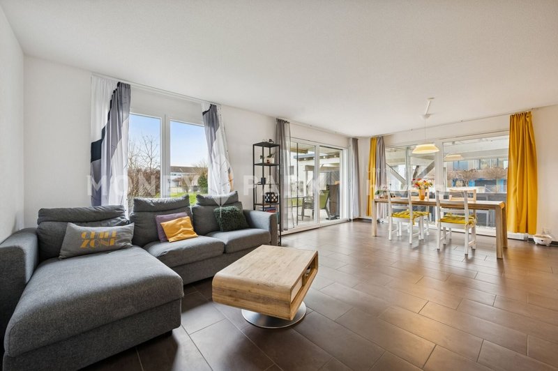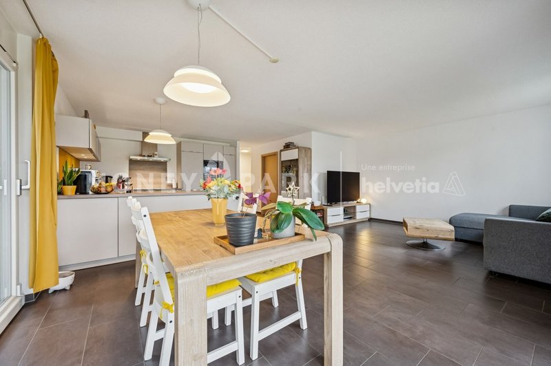 Cet appartement bénéficie d'un bon ensoleillement, d'un agencement pratique parfaitement adapté à une famille ou un couple désirant de l'espace. À proximité immédiate des écoles, des commerces, de la poste et des transports publics, il offre un cadre privilégié entre nature et confort.