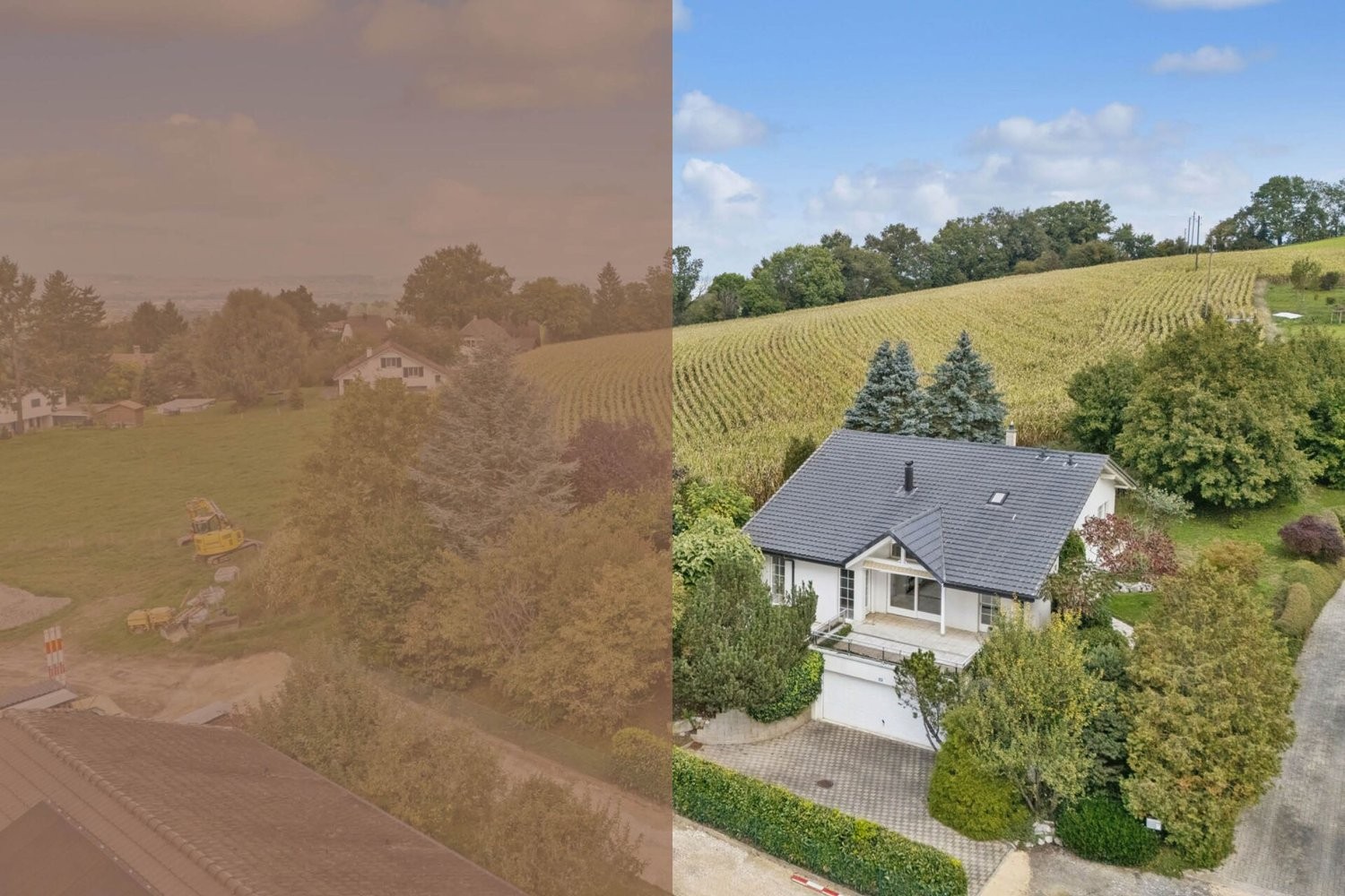 Diese Immobilie befindet sich an erhöhter Lage am ruhigen Rand von Montagny-la-Ville, wo sich unverbaubare Fernsicht und naturnahe Umgebung vereinen. Am Ende einer stillen Quartierstrasse gelegen, geniessen Sie hier ein Umfeld mit viel Privatsphäre und stimmiger Atmosphäre. Die direkte Zufahrt führt zum gepflegten Vorplatz mit einer Doppelgarage und mehreren Abstellmöglichkeiten.