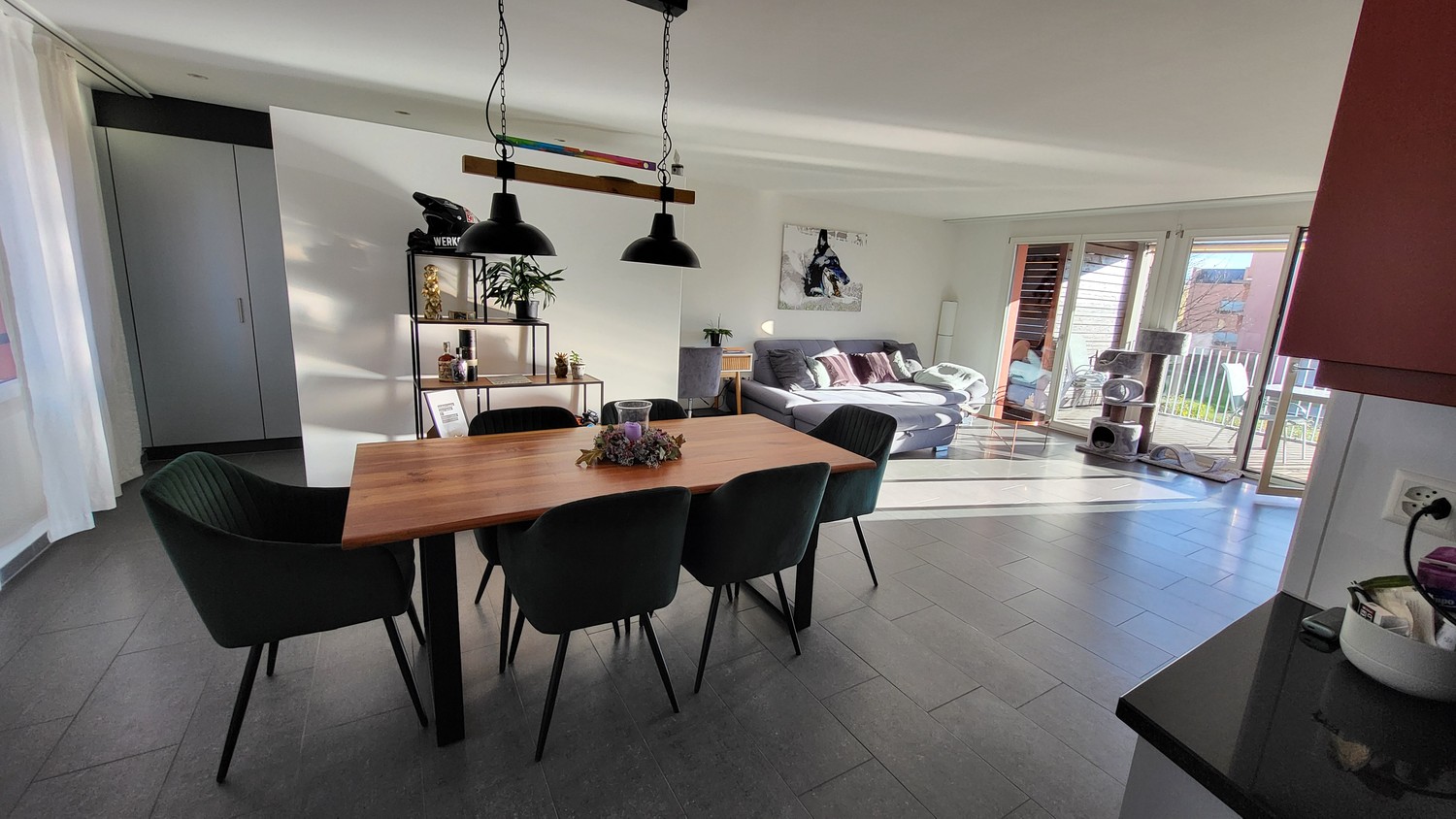 Das perfekt abgestimmte Farbkonzept der Fassaden und die lichtdurchfluteten Räume werden Sie auf Anhieb überzeugen. Für die warmen Sommertage lädt die grosse Terrasse mit 50 m² mit separatem Geräteraum (6 m²), zum Verweilen ein. Hochwertige Parkettböden und Feinsteinzeugplatten verleihen allen Räumen eine elegante Note und sind zudem leicht zu reinigen. Die Wohnung ist bequem per Lift direkt von der Tiefgarage aus erreichbar.