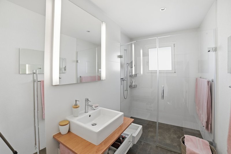 ● Stilvolles Badezimmer: Mit grosser begehbarer Dusche, Bidet und praktischen Aufbewahrungsmöglichkeiten