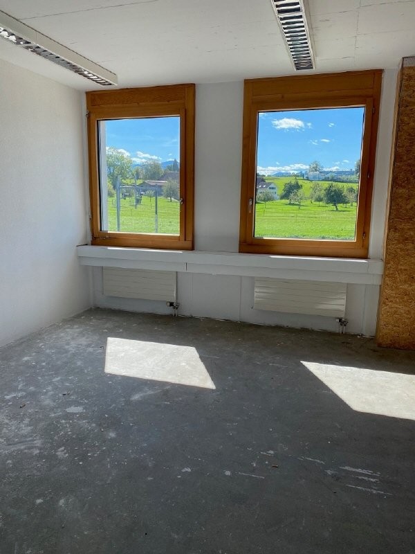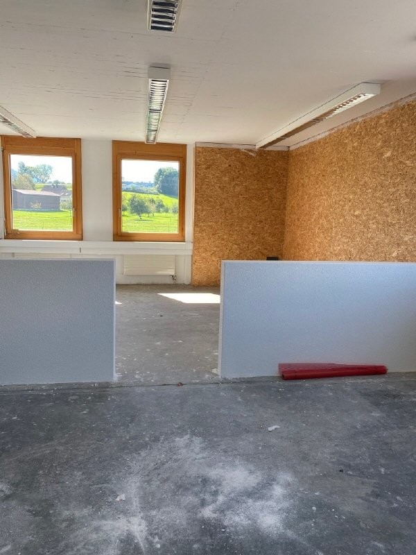 Die Gewerbefläche (ca. 85 m²) im 1. Obergeschoss eignet sich als Büro, medizinische Praxis, Therapieräume, Schulungslokale oder Ähnliches. Die Räume sind aufgeteilt in zwei Einzelbüros. Dies kann jedoch noch flexibel geändert werden. Die Büroräume sind im Rohbau zu mieten. Beim Titelbild handelt es sich nur um ein Beispielbild von einem möglichen Ausbau.
