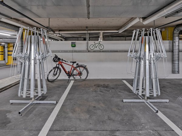 Das Angebot wird zudem durch ansprechende Gemeinschaftsflächen wie eine grosszügige begrünte und möblierte Dachterrasse, das helle Atrium mit digitalem Empfang, einem Collab-Raum, Duschen mit Garderoben sowie einer überdachten Anlieferungszone ergänzt. Die hauseigene, teilweise öffentliche Autoeinstellhalle mit ca. 277 Parkplätzen (Elektroparkplätze vorhanden) sowie die 50 Veloabstellplätze und die Velogarderobe runden dieses einzigartige Angebot ab.