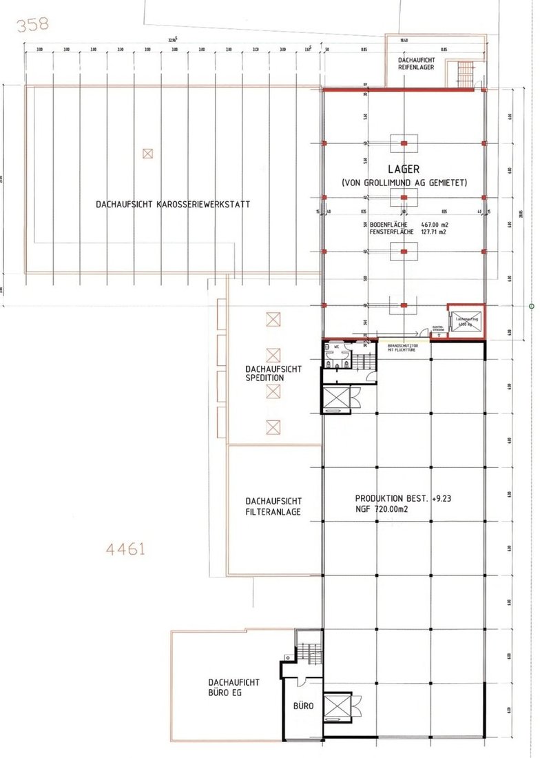 Die Raumhöhen betragen zwischen 4,27 m und 4,6 m, was optimale Nutzungsmöglichkeiten für Produktion und Lagerung bietet. Drei Warenlifte mit einer Tragkraft von bis zu 4 t erleichtern den Transport innerhalb des Gebäudes. LKW's können über die Laderampen be- und entladen werden. Beheizt wird die Liegenschaft über eine Ölheizung.