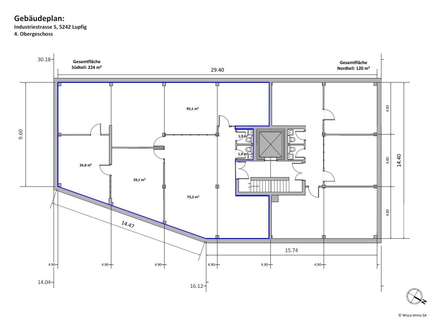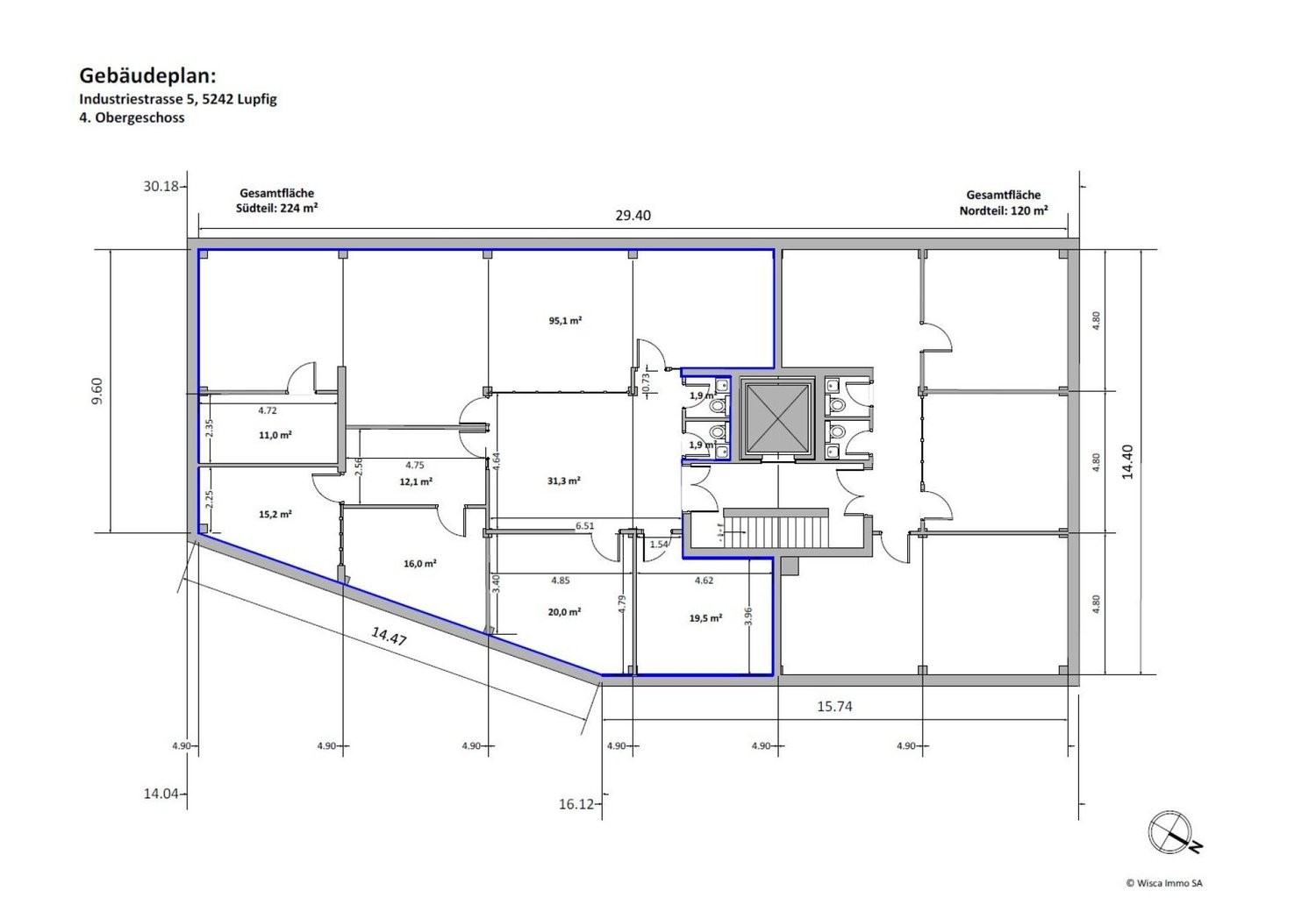 Büro-/Gewerbefläche à 224 m² im 4. Obergeschoss.