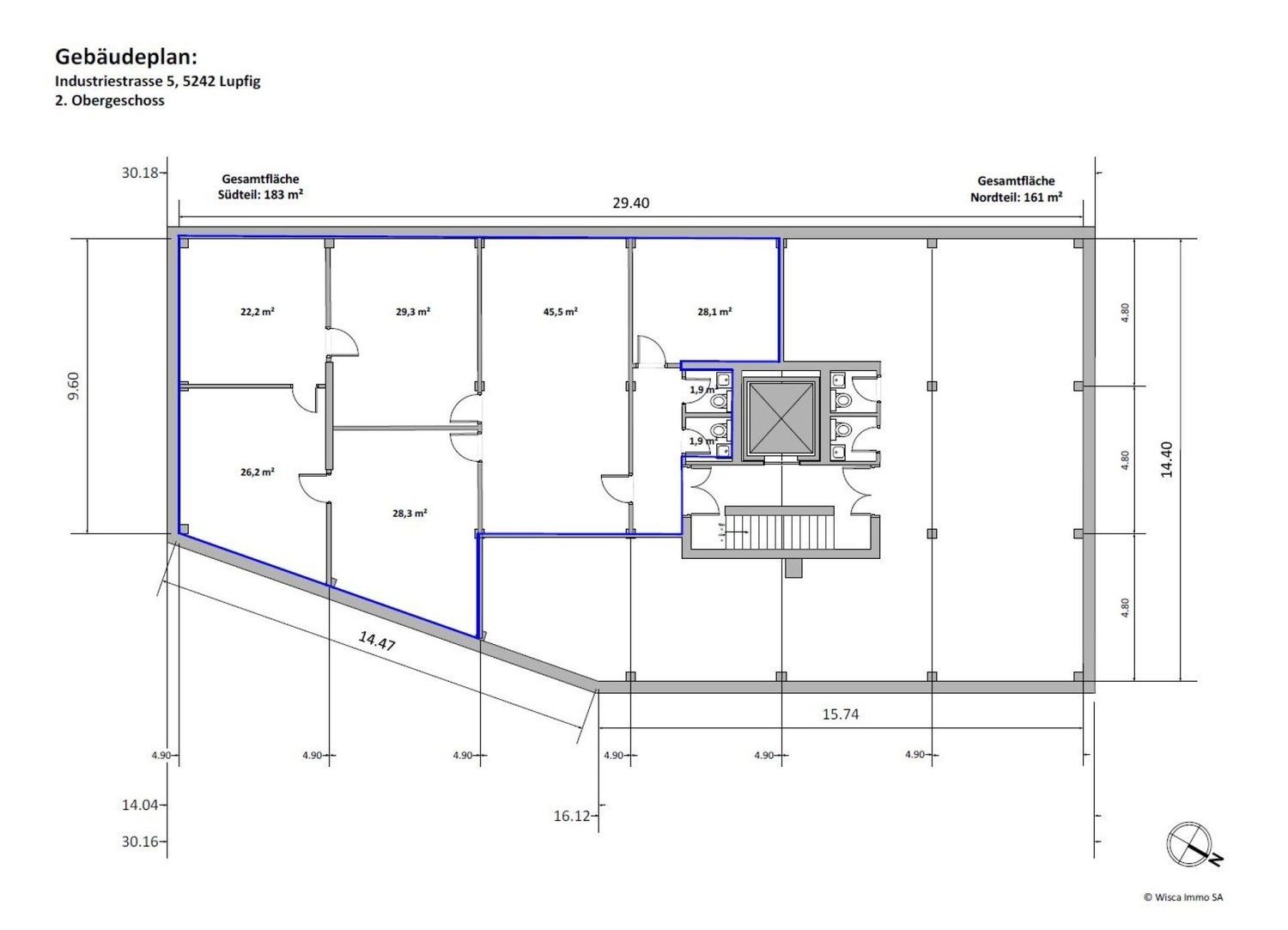 Büro-/Gewerbefläche à 183 m² im 2. Obergeschoss.