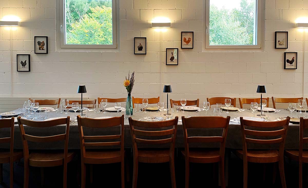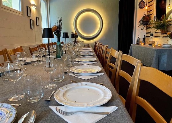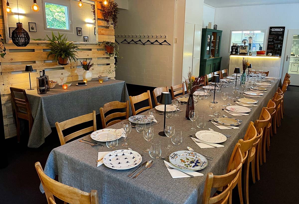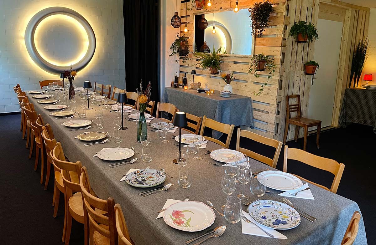Im Gastraum / Gewerberaum können z.B. am grossen Tisch grossartige Kochkünste für ca. 20 Personen dargeboten werden oder andere Veranstaltungen abgehalten werden.