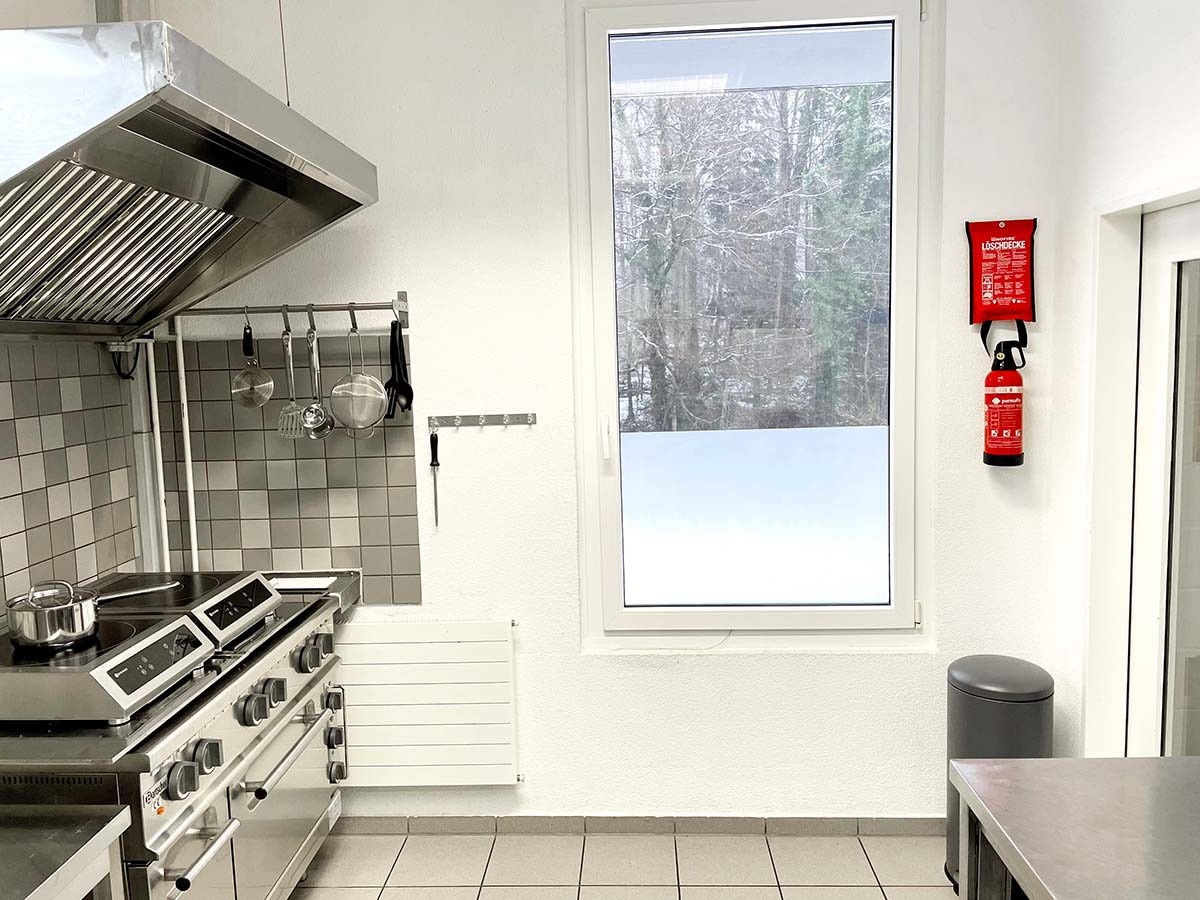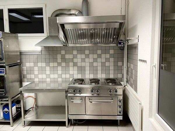 Diese schöne Produktionsküche befindet sich an der Isenrietstrasse 1A, in Mönchaltorf. Die Küche, Gastraum und das Lager wurden durch die Behörden/Ämter kontrolliert und bewilligt.