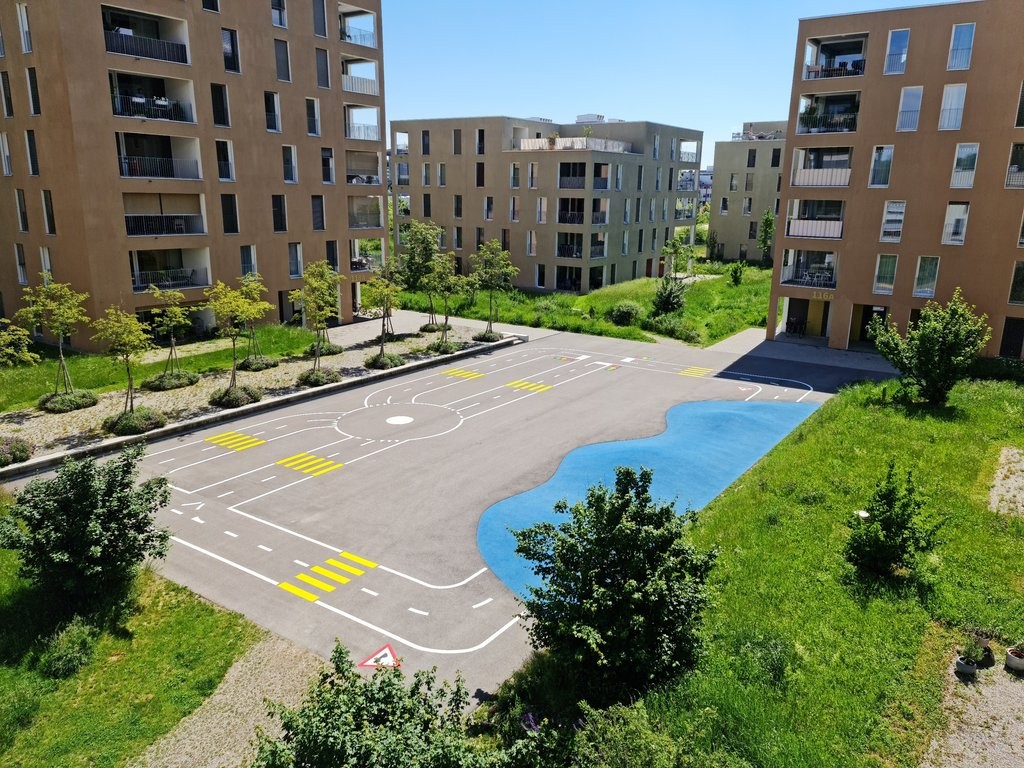 Einstellhallenplätze können für CHF 130.00 / Monat dazu gemietet werden. Zudem stehen in der Einstellhalle auch Elektro-Parkplätze (CHF 160.00 / Monat zzgl. individuelle Stromkosten) zur Verfügung.