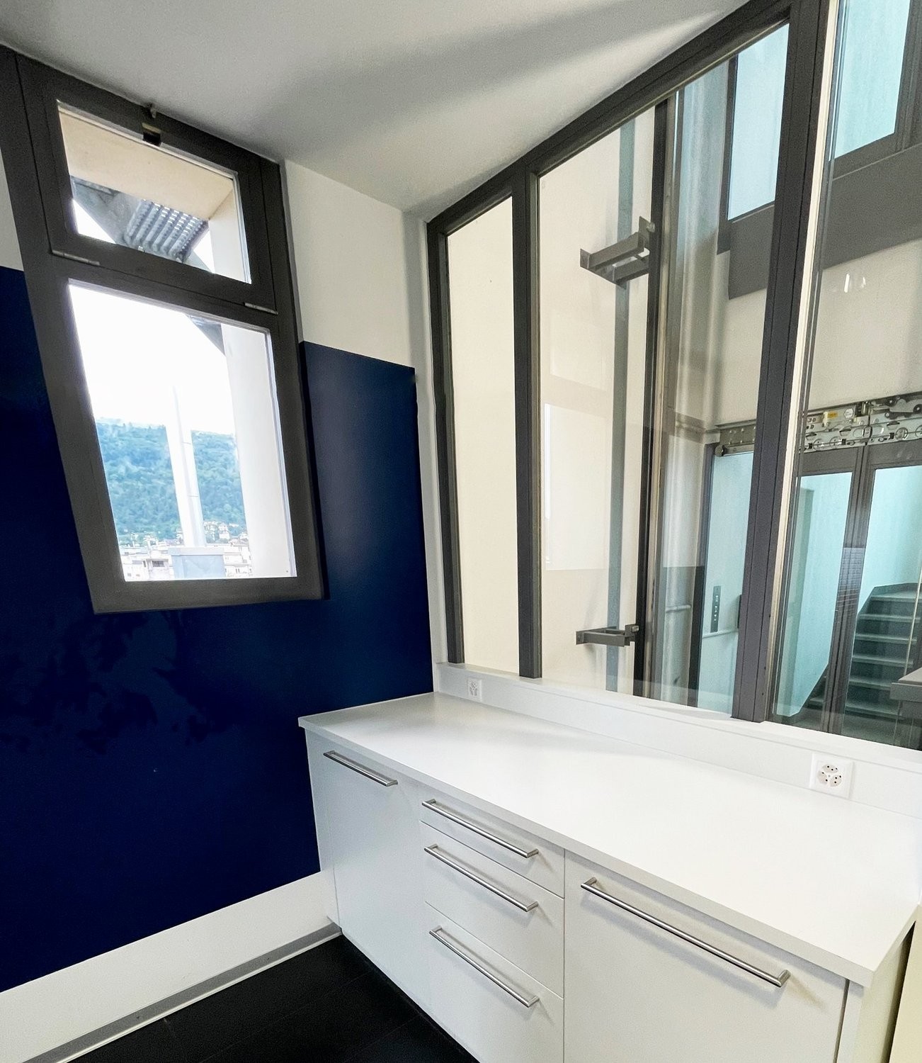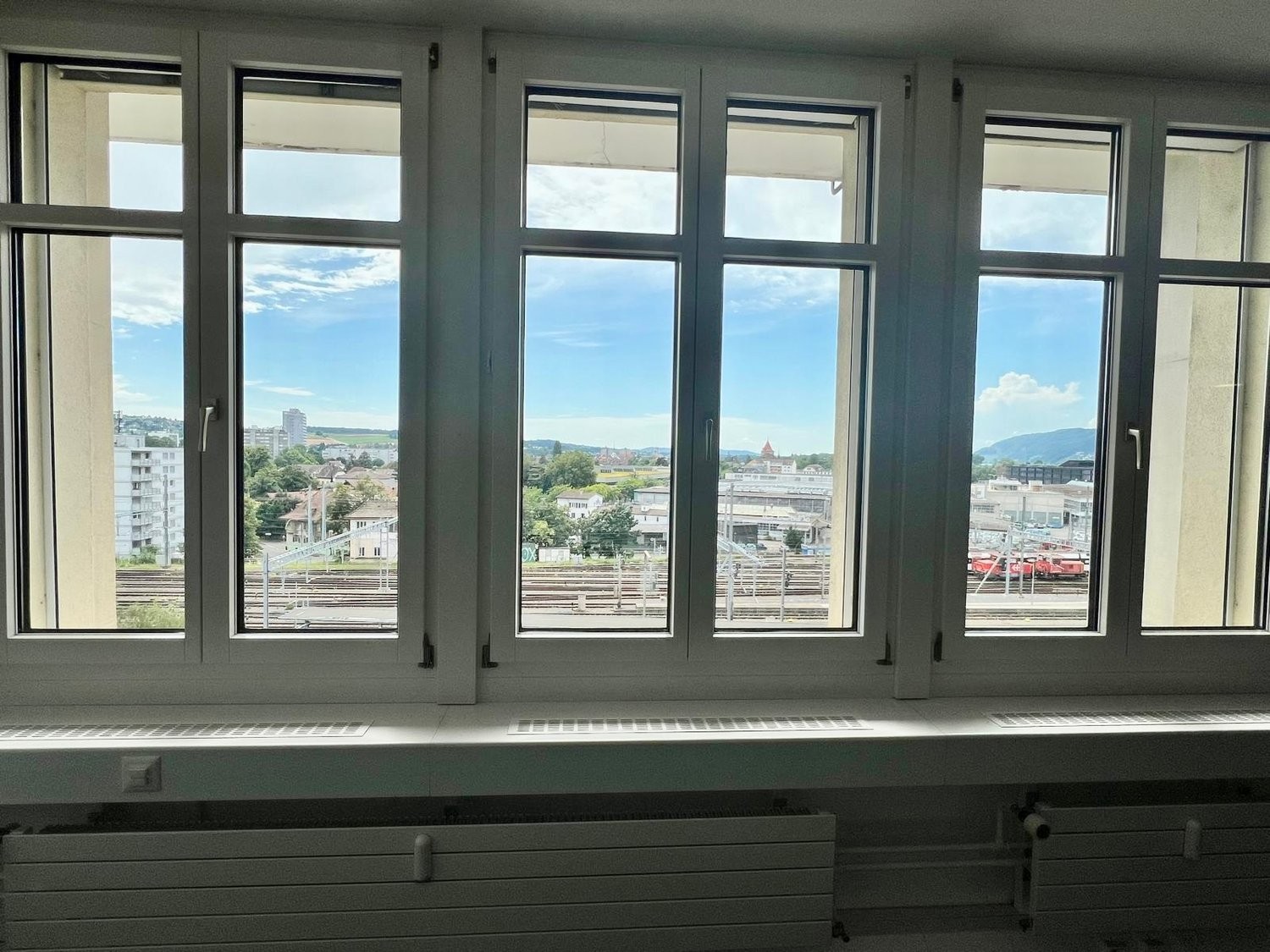 Die hellen und modernen Büros mit traumhafter Aussicht sind in einzelne Räume unterteilt.