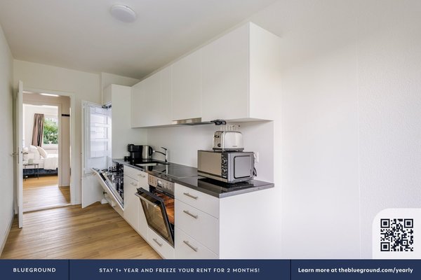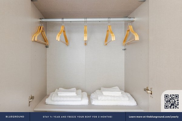 Dieses Blueground Wohnung bietet flexible Mietoptionen, sodass Sie es für drei Monate, ein Jahr oder länger buchen können.Wir sind sehr stolz darauf, dass alle gezeigten Fotos in unseren eigenen Einheiten mit unserer tatsächlichen Einrichtung aufgenommen wurden. Das heißt, wir aktualisieren regelmäßig unsere Dekoration und Möbelanordnung, die von dem abweichen kann, was abgebildet ist.