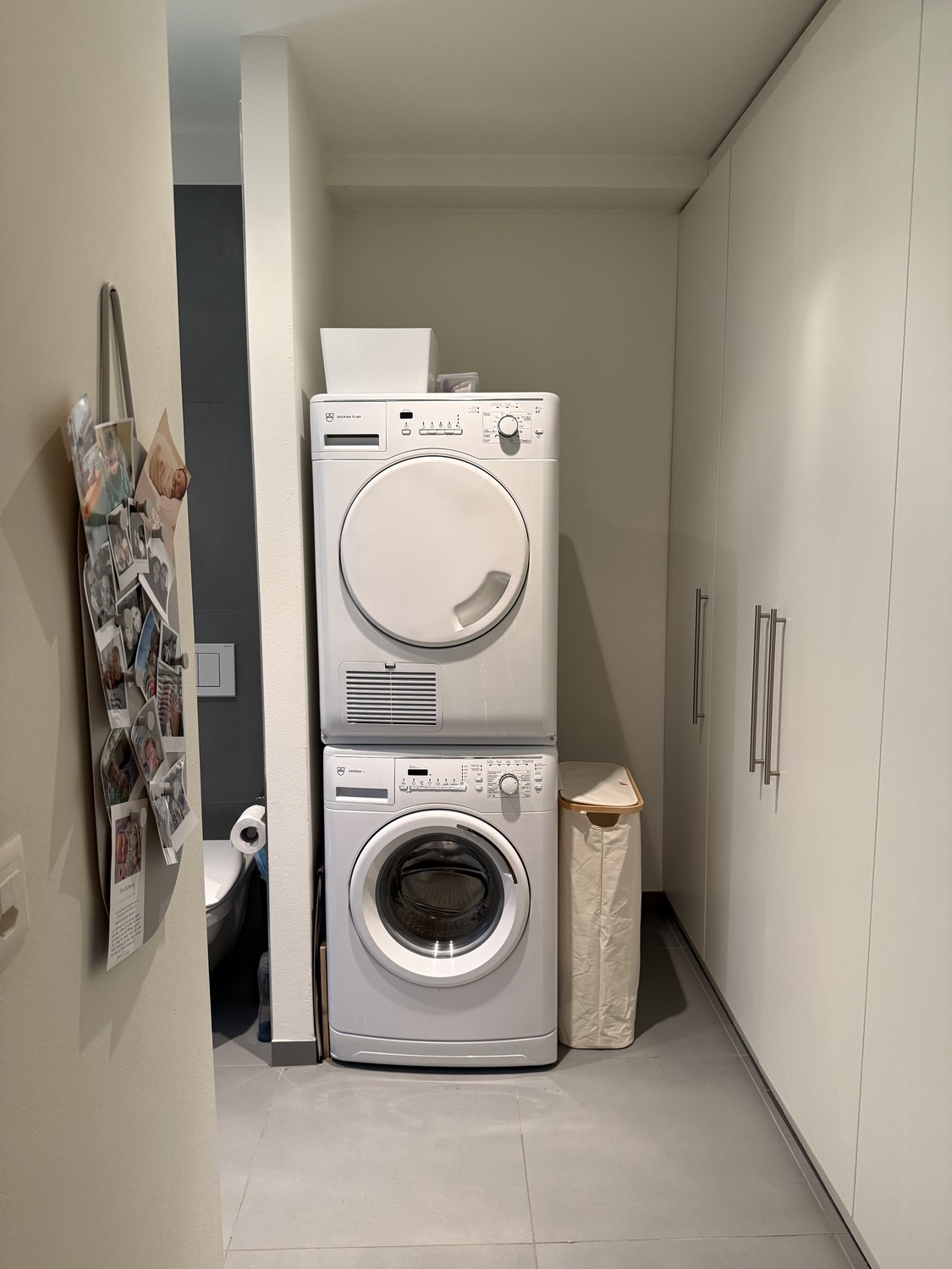 Die Wohnung hat eine Waschmaschine und einen Tumbler.
