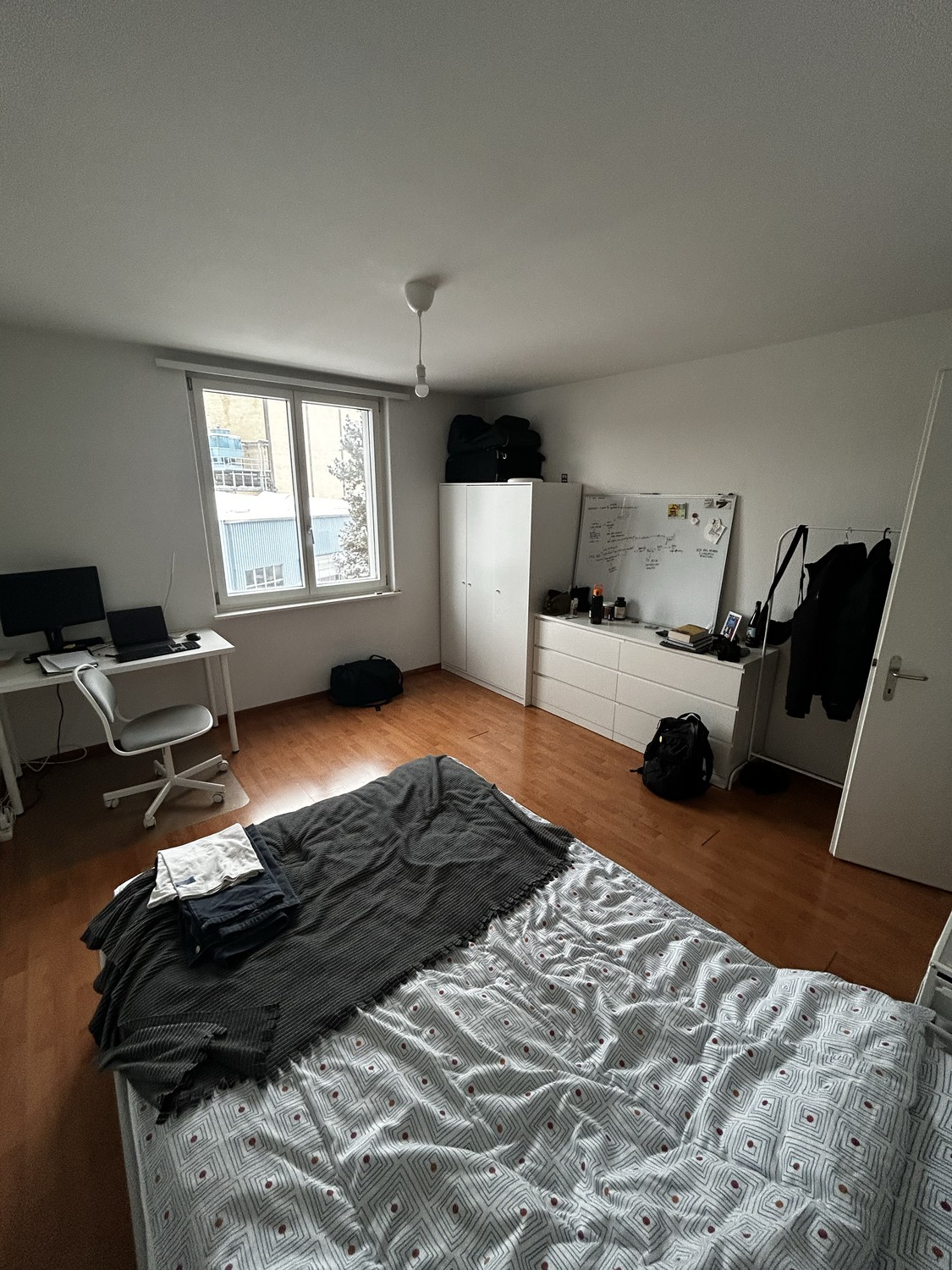 The flat is located a 2-minute walk from Oerlikon station. It consists of a kitchen with a balcony, a bathroom and three bedrooms. You will share the house with two easygoing guys, Patrick (25) from Ireland, who is in Zurich for his master's thesis, and Fabrizio (28) from Italy, who is working. The price includes all utilities except Wi-Fi (15 CHF/month) and electricity (60 CHF/quarter).