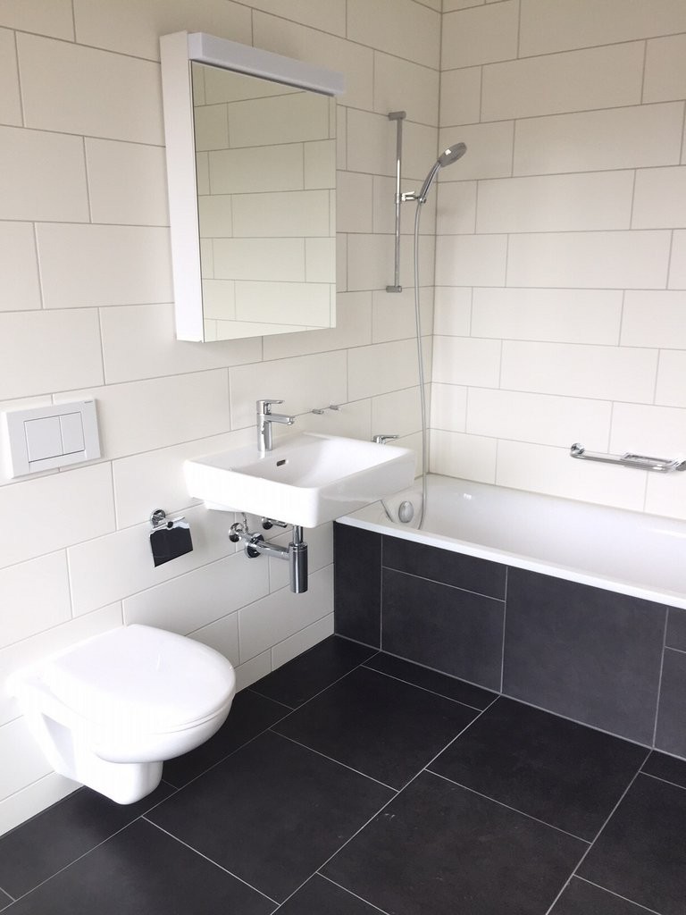 - Badezimmer mit Feinsteinzeug schwarz/weiss