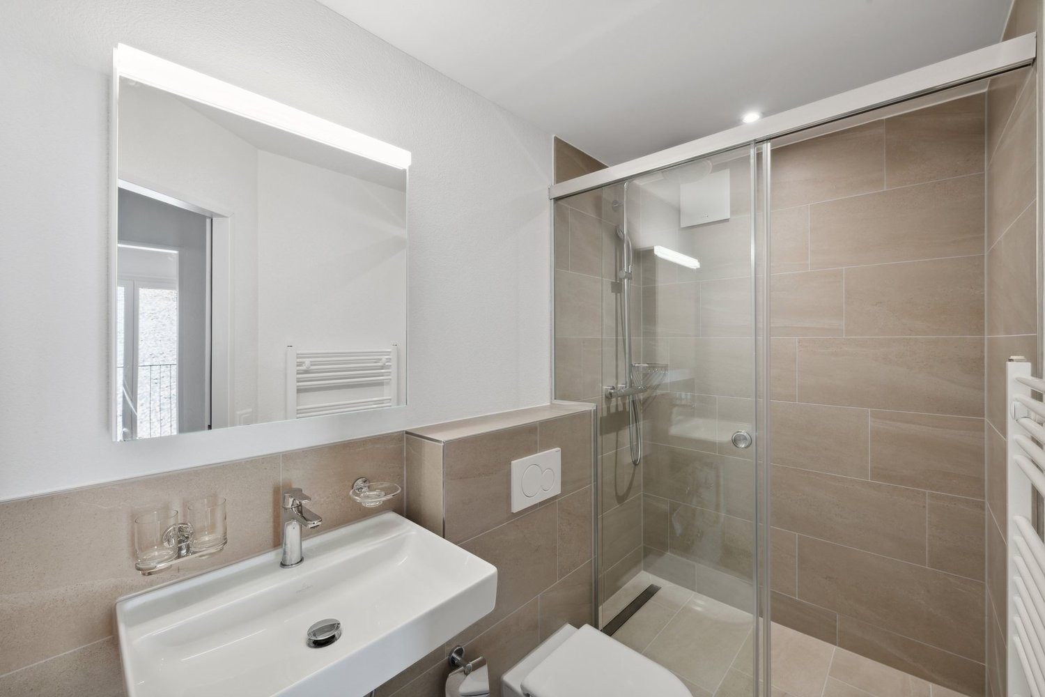 - Bad mit Dusche und Keramikboden