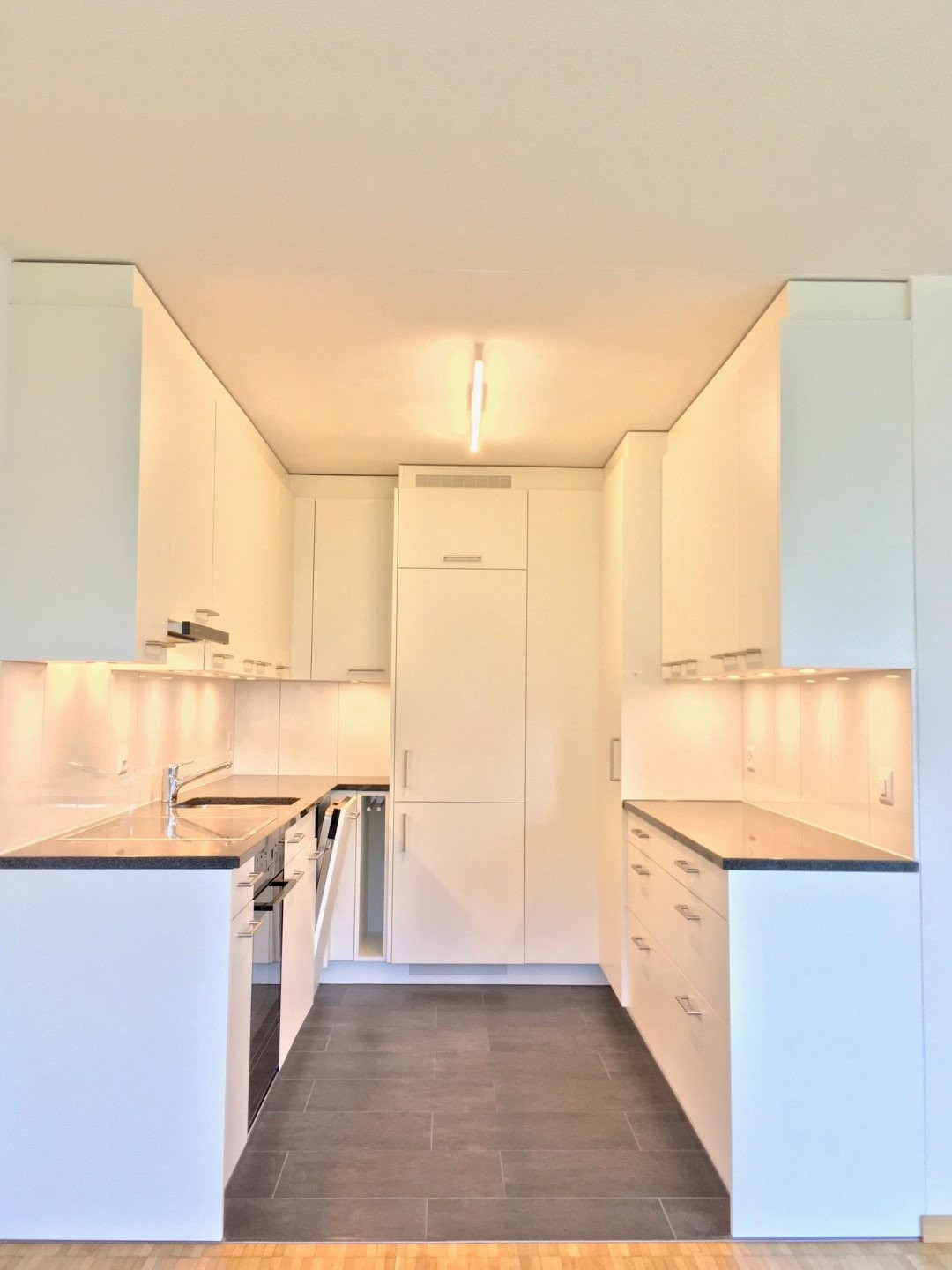 -top ausgestattete Küche mit viel Stauraum, Tageslicht und pflegeleichtem Plattenboden
