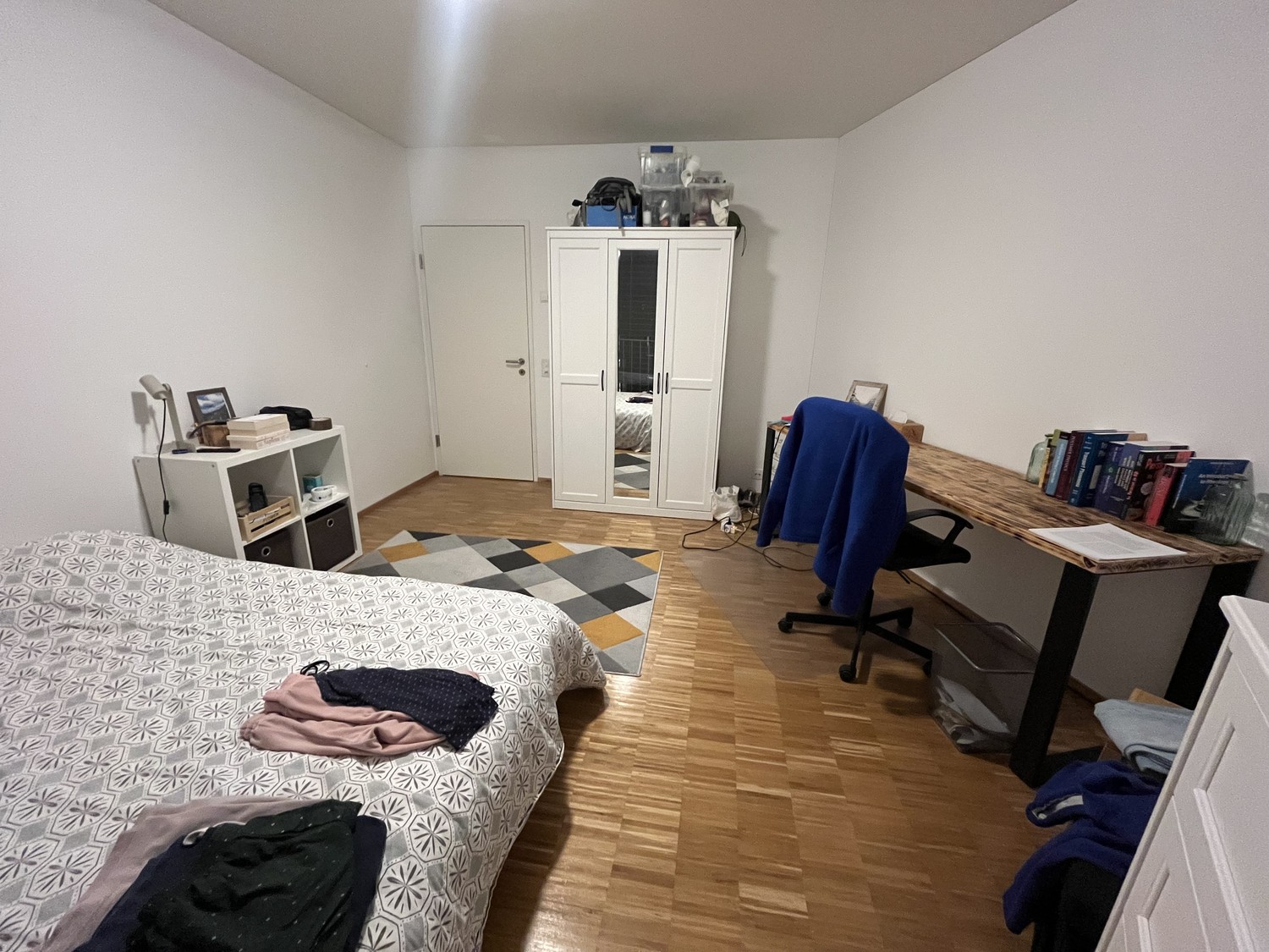 As 1 flatmate is moving out, you will share the apartment with 1 PhD (M, 26) at ETH Zurich, 1 PhD (M, 26) at UZH, and one young professional working in consulting (F, 26).