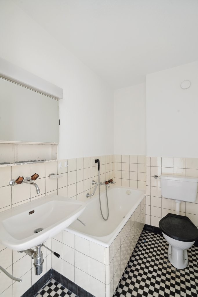 - Badezimmer mit WC, Lavabo, Spiegelschrank und Badewanne