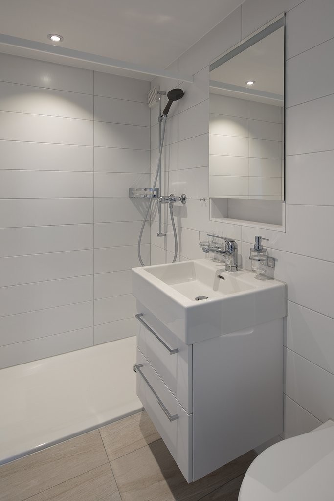- Modernes Badezimmer mit WC, Lavabo, Spiegelschrank und barrierefreier Dusche