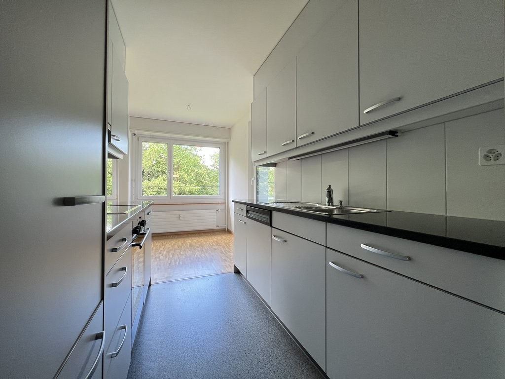 Die Fussböden in der Küche und in den zwei Badezimmern sind mit Platten belegt. Die Wohn- und Schlafräume sowie der Korridor verfügen über einen Parkettboden.