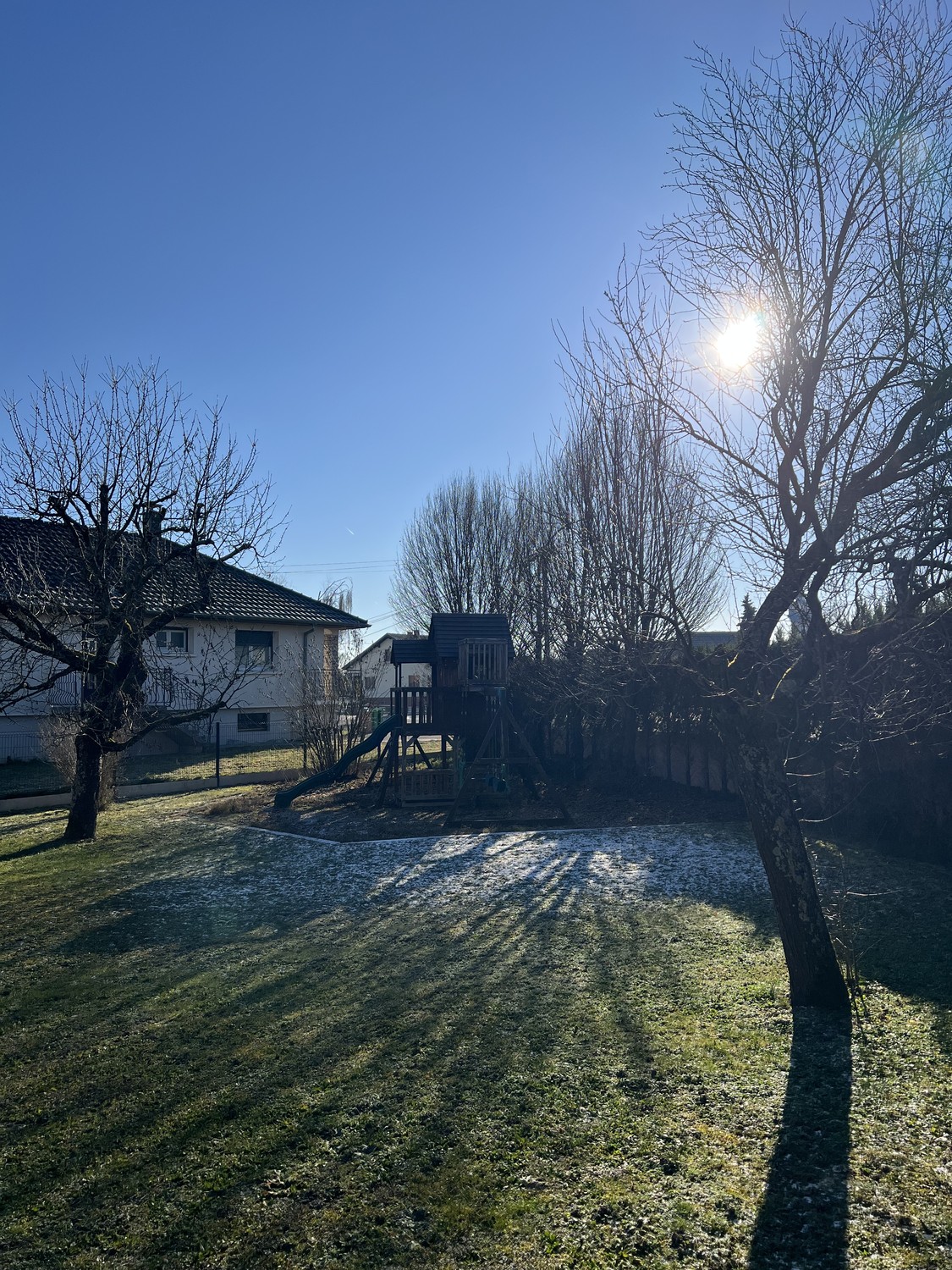 Das Grundstück ist mit 1'537 m² sehr gross und von 3 m hohen Büschen umgeben, wodurch man absolute Ruhe geniesst. Neben einem grossen Gartenhaus gibt es einen Kinderspielturm, wunderschöne grosse Bäume, Hochbeete und vieles mehr.