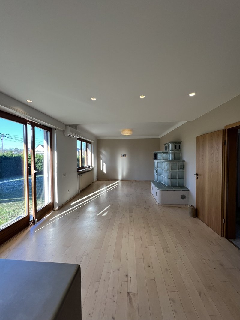 Das Haus umfasst 156 m² und kann über die Gasheizung, aber auch über den Kachelofen, geheizt werden. Zusätzlich gibt es in sechs Räumen jeweils ein Klimagerät, welches ebenfalls heizen könnte. Der Estrich ist äusserst geräumig und der Keller bietet neben einem grossen gefliesten Raum noch einen Heizungsraum, einen Waschraum sowie eine Garage für zwei Autos mit elektrischem Tor.