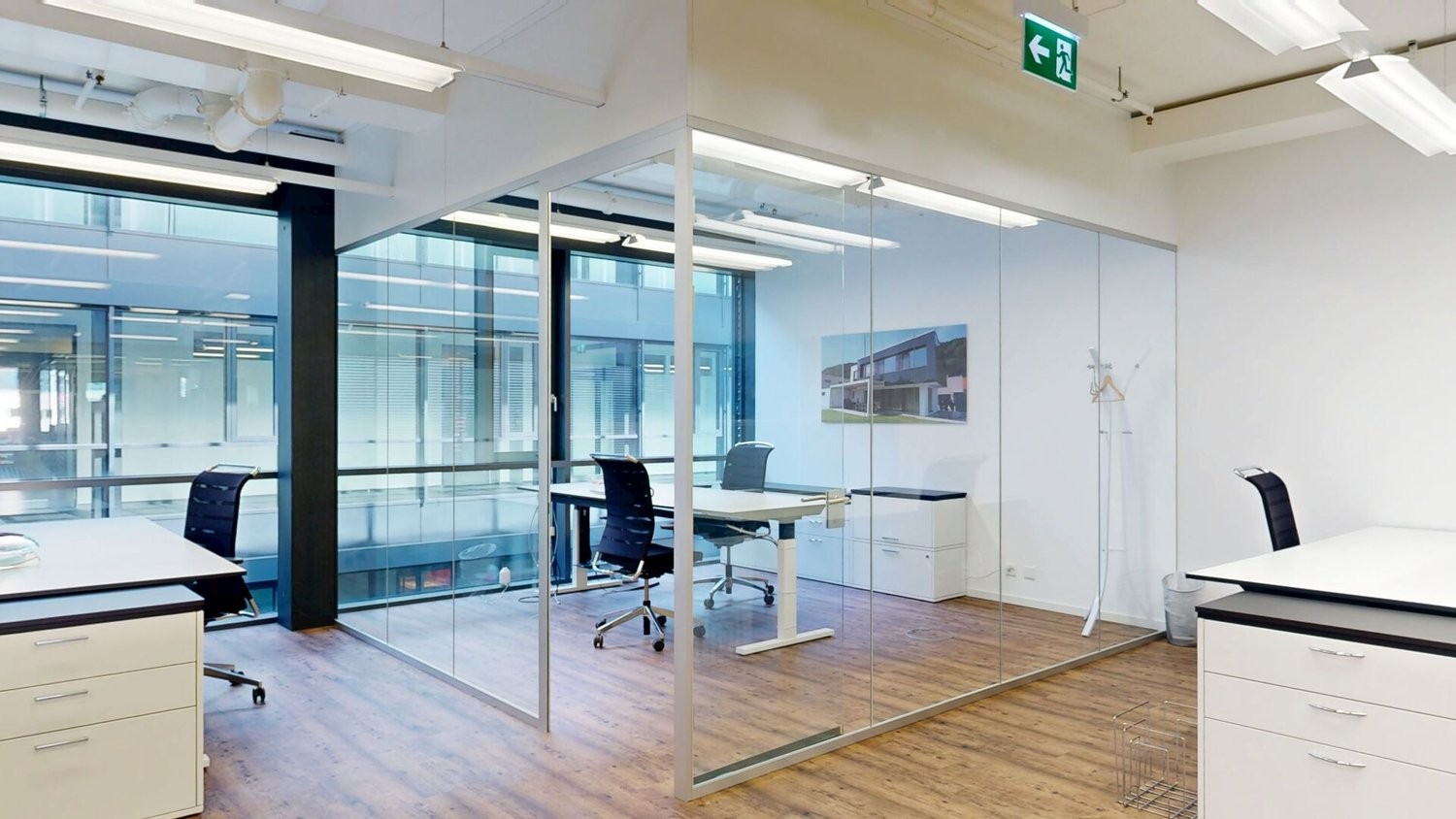 Die Fläche bietet viel Raum für verschiedenste Ideen und Nutzungskonzepte, ob als Büro, Verwaltungsstandort, Praxis oder Ausstellungsfläche. Dank der durchdachten Aufteilung und dem hohen Ausbaustandard lässt sich hier ein professionelles und zugleich angenehmes Arbeitsumfeld realisieren.