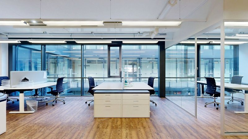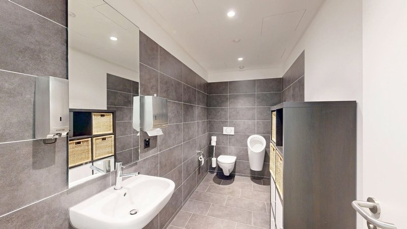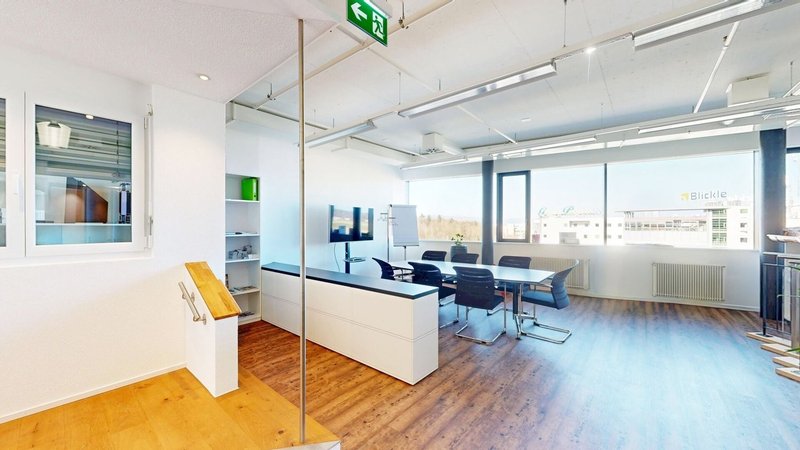 Der Ausbau überzeugt mit Minergie-Bauweise, 3-fach verglasten Fenstern, einer Raumhöhe von rund 3.11 m sowie einem belüfteten und teilklimatisierten Raumkonzept. Bodenanschlussdosen mit EDV-Verkabelung, Grundbeleuchtung, Telefon-, Radio-, TV- und Internetanschlüsse (Localnet und Swisscom), Laminatboden sowie weiss gehaltene Wände und Decken sind bereits vorhanden. Zur Fläche gehören eine Teeküche mit Kühlschrank und Geschirrspüler, Damen- und Herren-WC-Anlagen, zwei barrierefreie WC-Anlagen, eine Dusche sowie ein Server- bzw. Abstellraum.