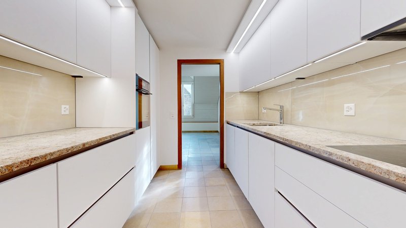 Die Wohnung wurde mit viel Liebe zum Detail frisch saniert und wird erstmals nach der Renovation bezogen. Sämtliche Räume präsentieren sich in einem modernen, stilvollen Zustand. Die Küche ist mit neuen Geräten ausgestattet, während die Fussbodenheizung ganzjährig für ein angenehmes und behagliches Wohnklima sorgt. Clever integrierte Einbauschränke bieten viel Stauraum, ohne den offenen und grosszügigen Charakter der Wohnung zu beeinträchtigen. Ein besonderes Highlight ist das wunderschöne Cheminée im weitläufigen Wohnbereich, das sowohl optisch als auch atmosphärisch begeistert und für gemütliche Stunden sorgt.