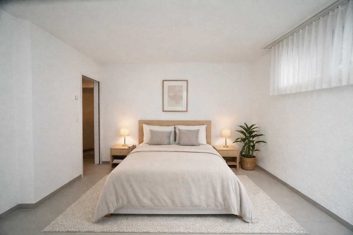 Die Wohnung wird unmöbliert vermietet. Die gezeigte Einrichtung dient ausschliesslich als Wohninspiration und zur besseren Vorstellung der Raumwirkung.