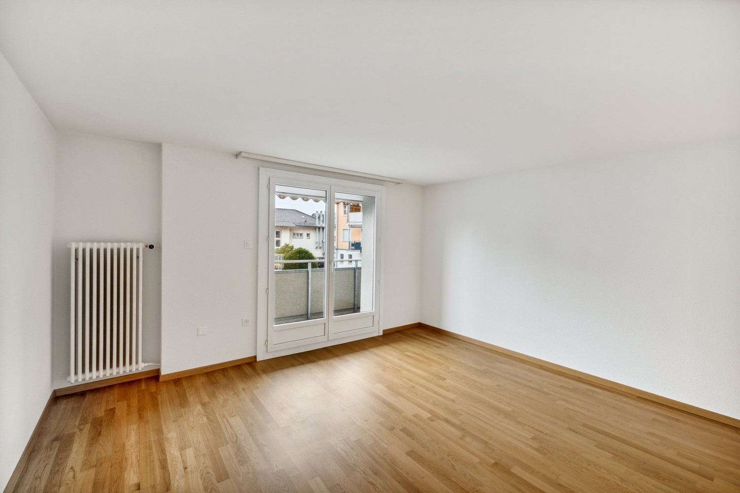 Wohn- und Schlafzimmer mit einem Eichen-Parkettboden