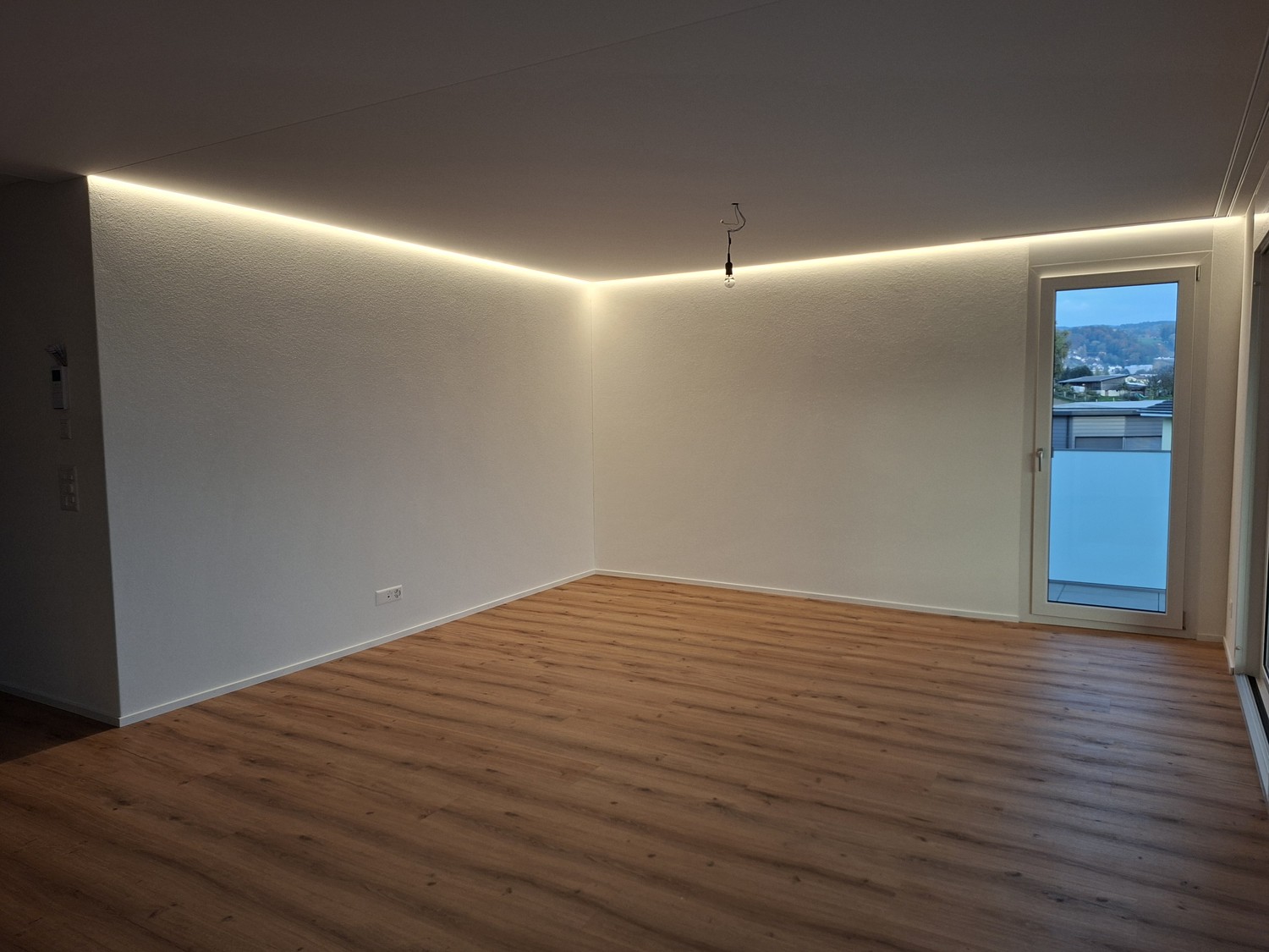 • Elektrokonzept mit zahlreichen Spots, eingelassenen LED Leisten und motorisierte Jalousien.