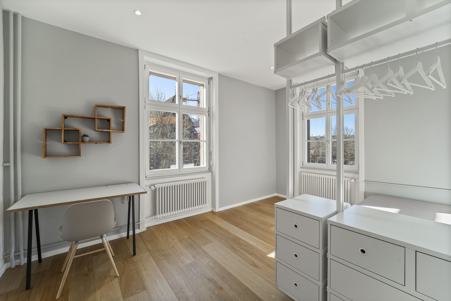 Mitbenützung der Etagenküche und Teilung eines WC/Dusche mit einer anderen Bewohner/in. Gemeinschaftswohnzimmer im 4.OG. Mindestmietdauer 12 Monaten.