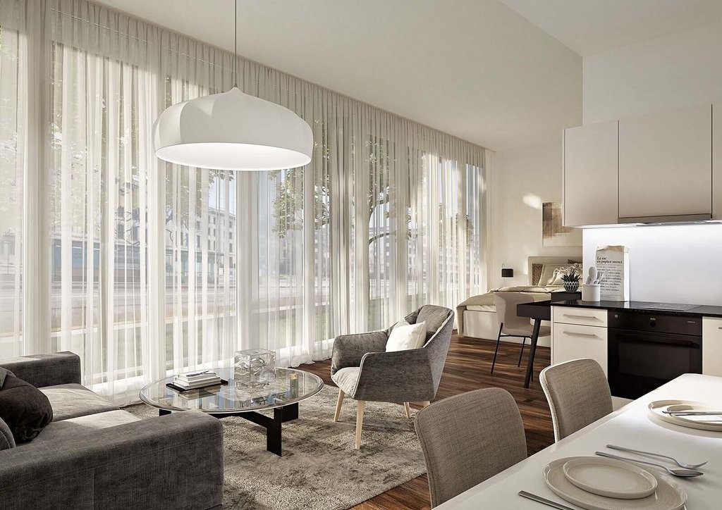 - Wohn- und Schlafzimmer mit hellem Parkettboden