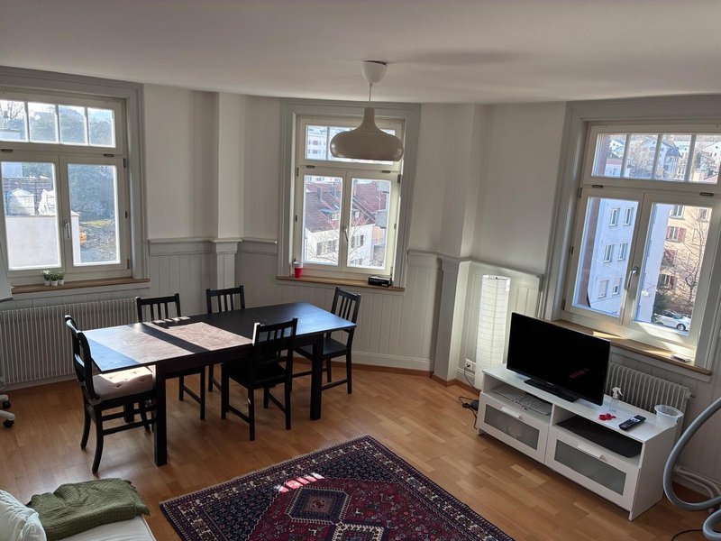 In our 3-person shared flat on Kolosseumstrasse in St. Gallen, one room is available. The apartment is ideal for an individual looking to join a friendly and relaxed shared flat. It is located on the 4th floor in a quiet area, bright, and fully furnished.