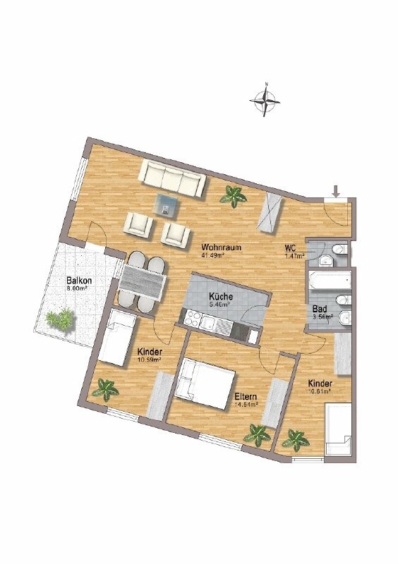 - sonniger Balkon mit 8 m²