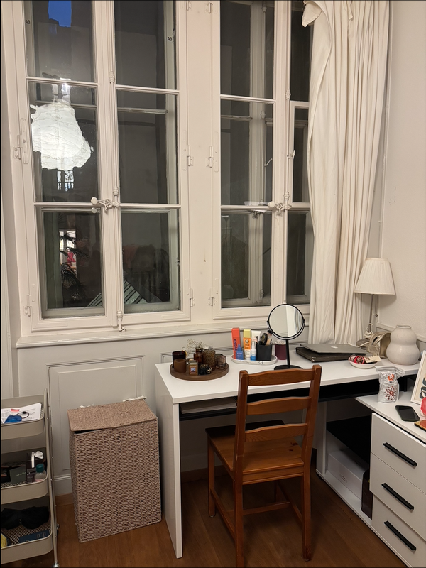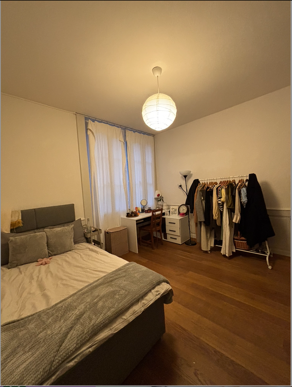 Sie bietet alles, was man im Alltag braucht: eigene Waschmaschine, Geschirrspüler, eine neu renovierte und grosszügige Küche sowie viel Altbau-Charme. Dein zukünftiges Zimmer ist rund 16 m2 gross, bietet genug Platz und hat direkten Zugang zum Badezimmer.