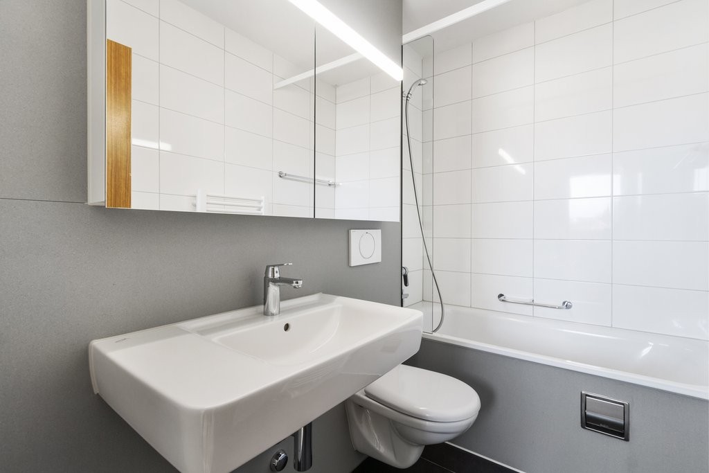 - Badezimmer mit Lavabo und Badewanne
