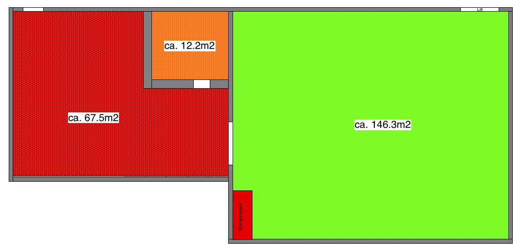 Neben der Gesamtfläche stehen auch kleinere Teilflächen zur Anmietung bereit – so finden Sie garantiert die Lösung, die genau zu Ihrem Unternehmen passt.